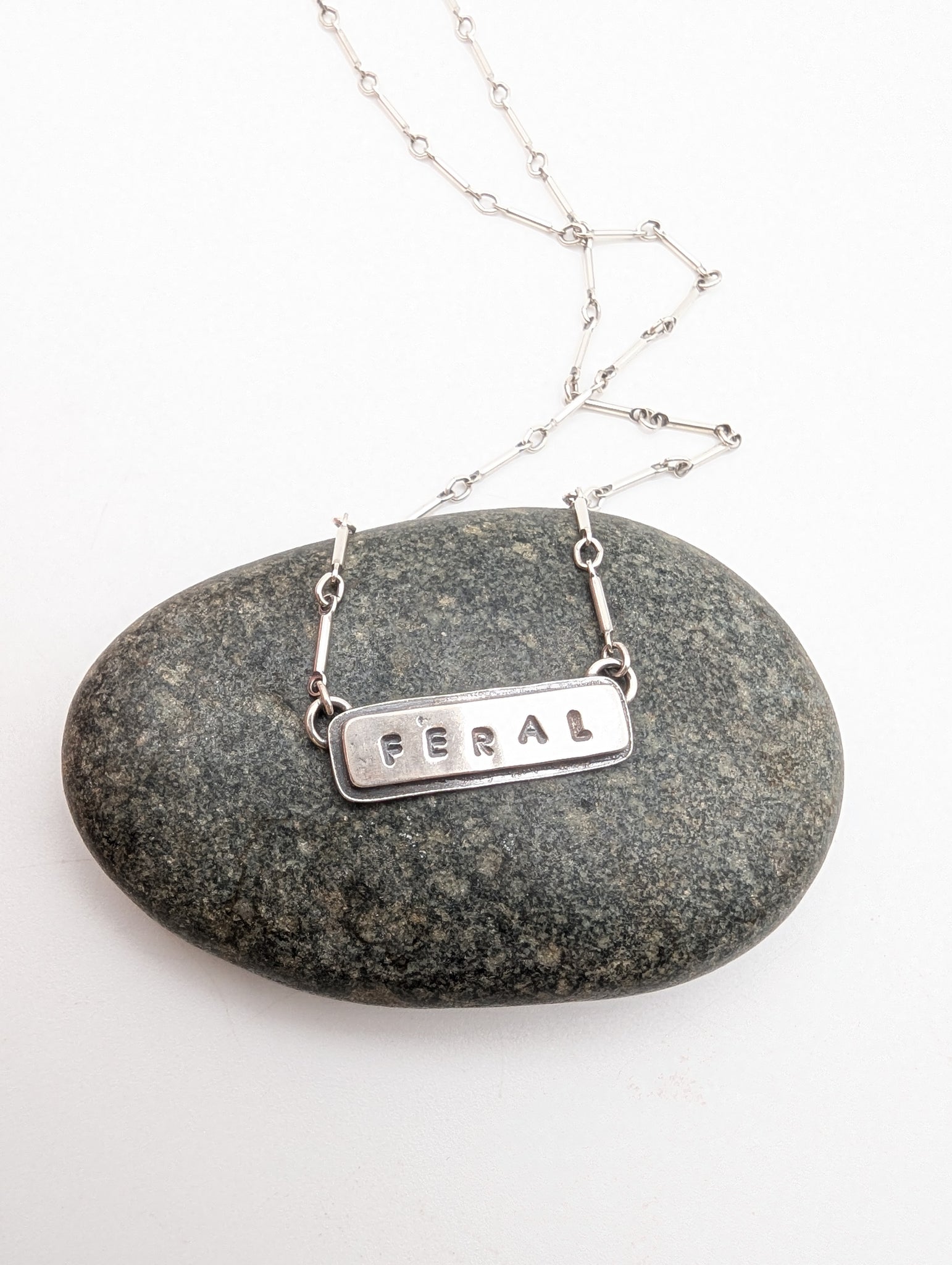 • Unleash your wild side with our brand-new Feral stamped bar necklace! Crafted in luxurious sterling silver, this edgy yet elegant piece is perfect for those who embrace their fierce, independent spirit.