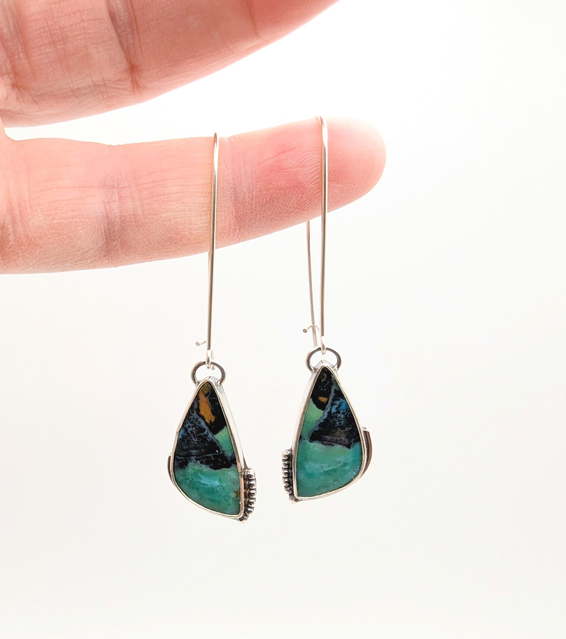 Hand-set in solid sterling silver, the design includes a small peek-a-boo back window so light can pass through and highlight the stone’s natural beauty from every angle. Finished with comfortable kidney-style earwires for easy, secure wear.